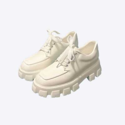 PRADA SOFT PADDED NAPPA LEATHER LACE UP SHOES WHITE