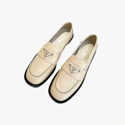 PRADA MEN’S FLAT LOAFERS LEATHER WHITE
