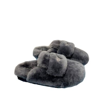 PRADA SHEARLING SABOTS GREY