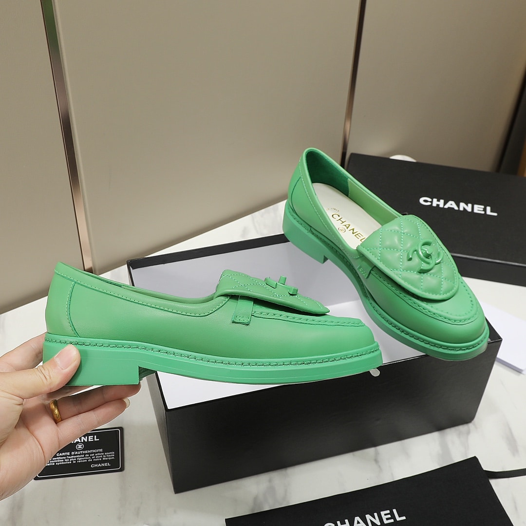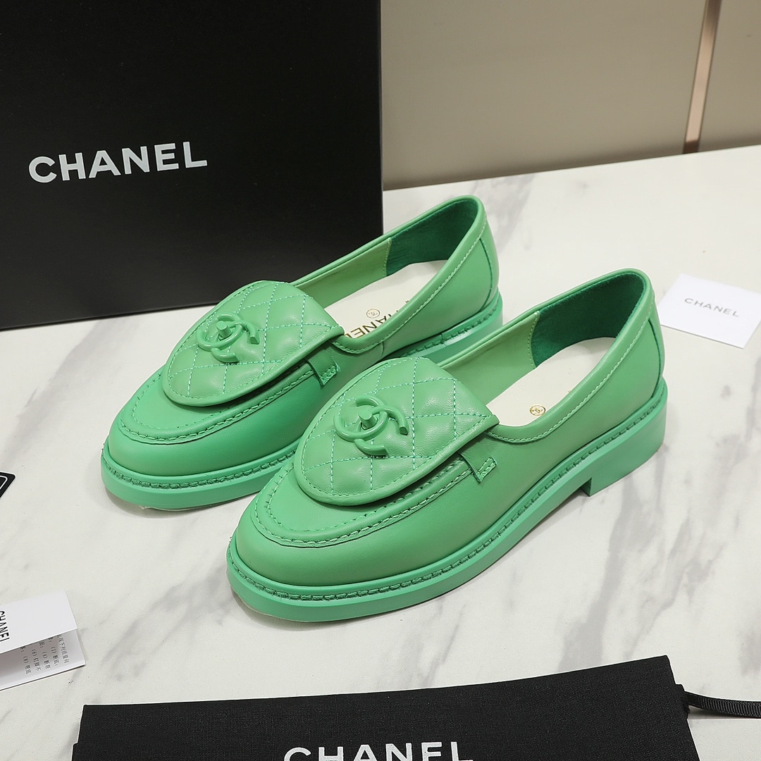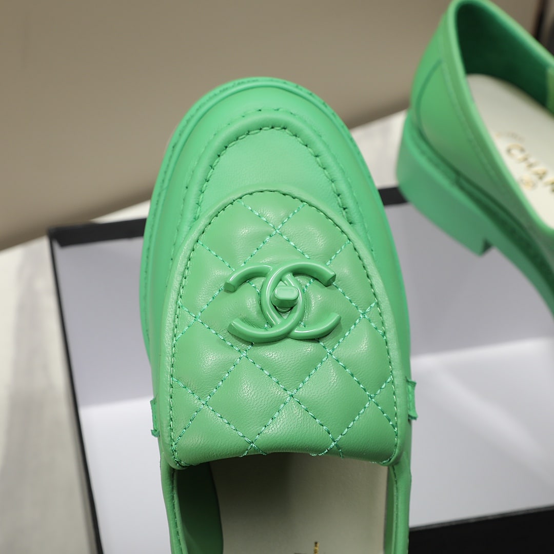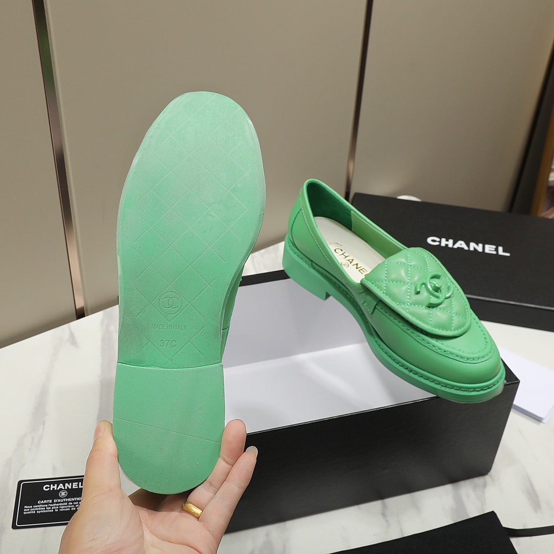 CHANEL CC NIB TURNLOCK MOCCASINS FLAT LOAFERS GREEN