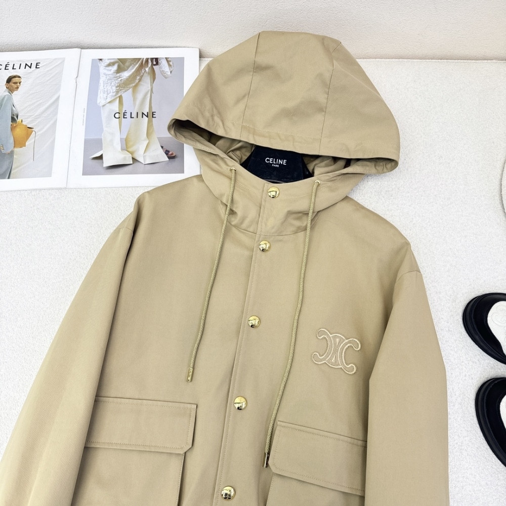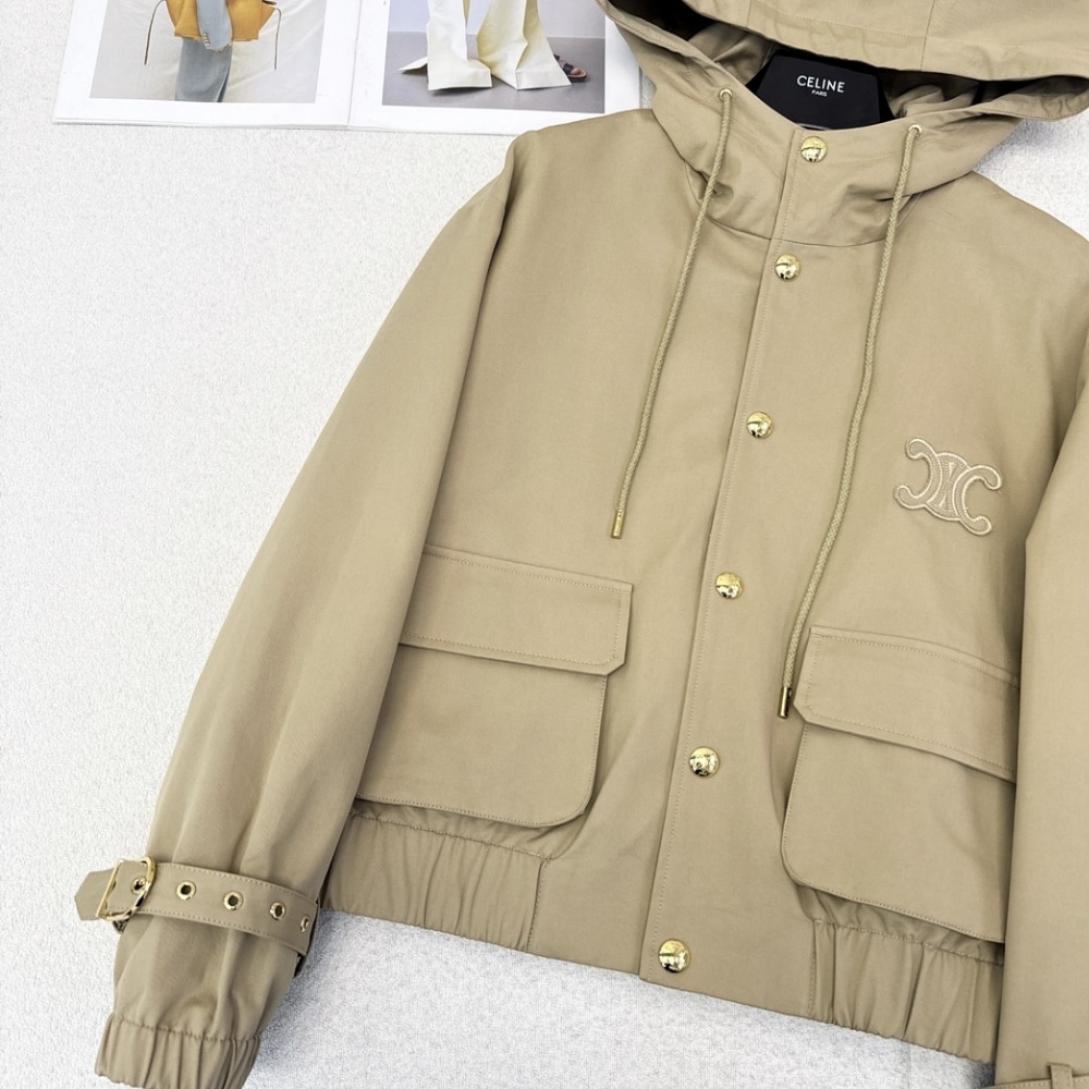 Celine Cotton Utility Jacket with Belted Cuffs – Beige
