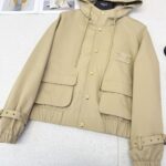 Prada Cropped Jacket Technical Canvas Dark Beige