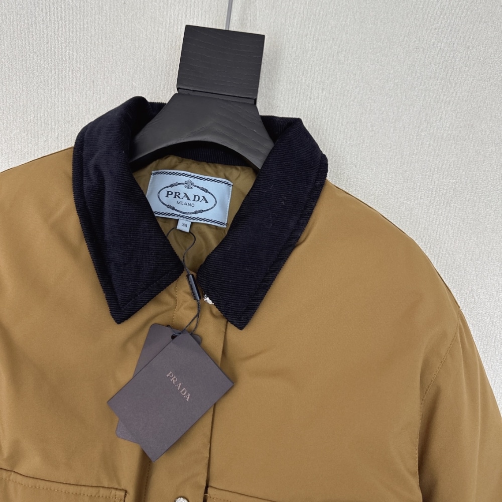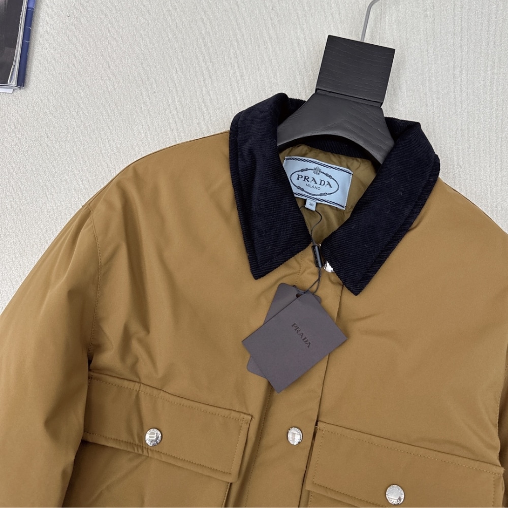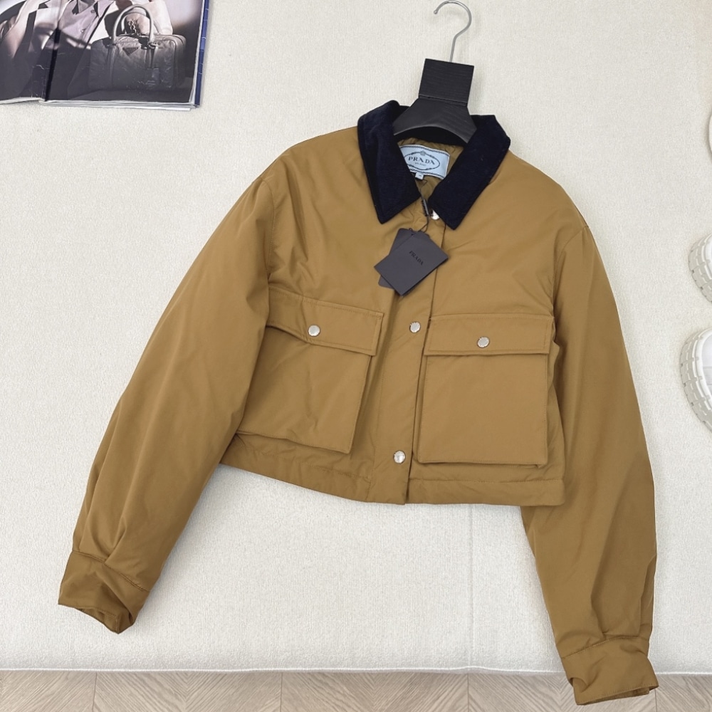 Home Shop Clothes Prada Cropped Jacket Technical Canvas Dark Beige