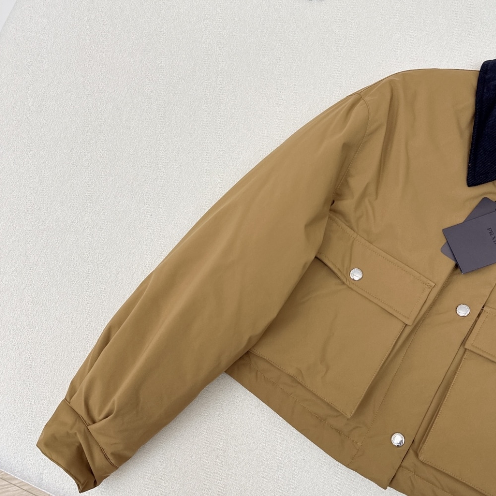 Prada Cropped Jacket Technical Canvas Dark Beige
