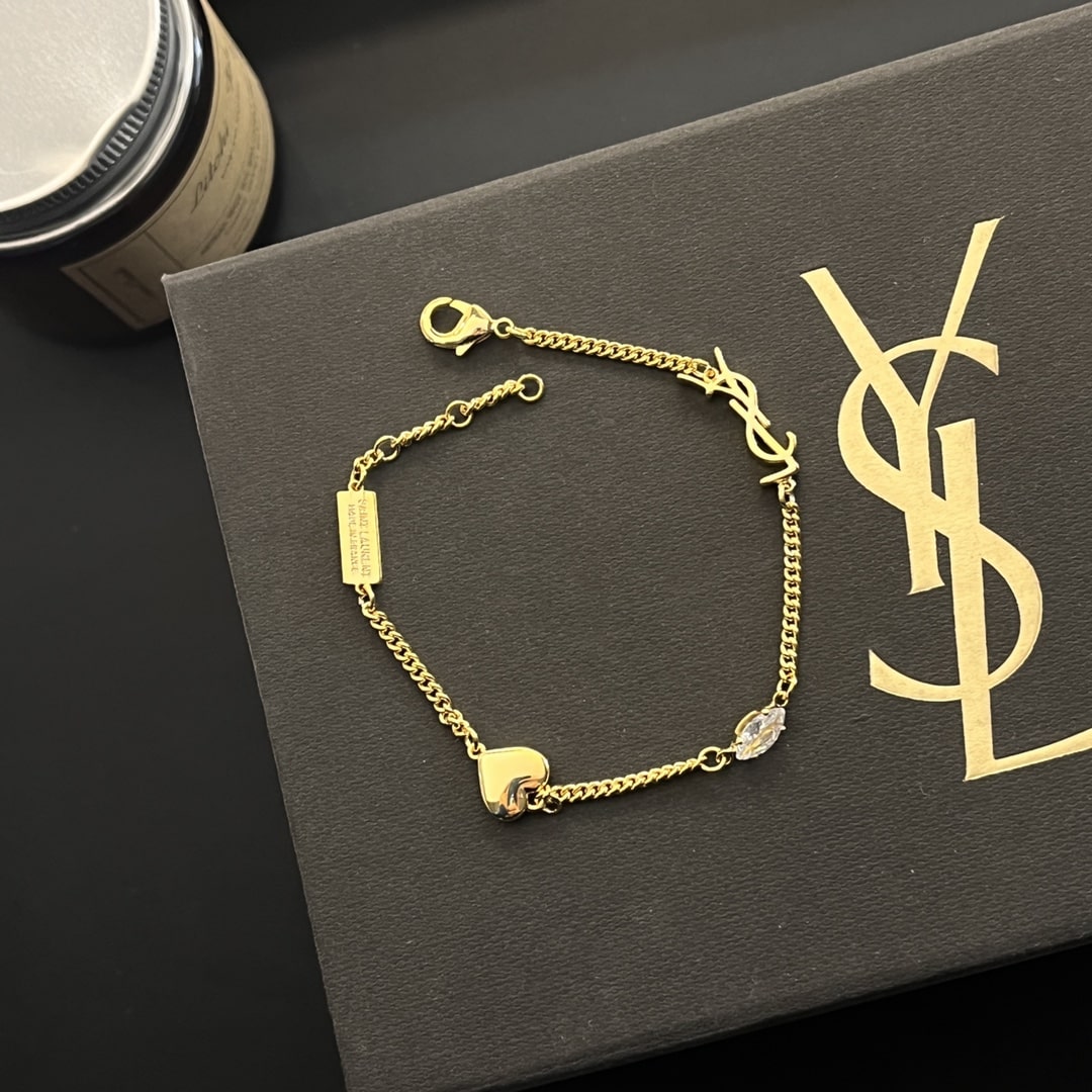 Saint Laurent Cassandre Heart Charm Bracelet Gold 701950Y15269137