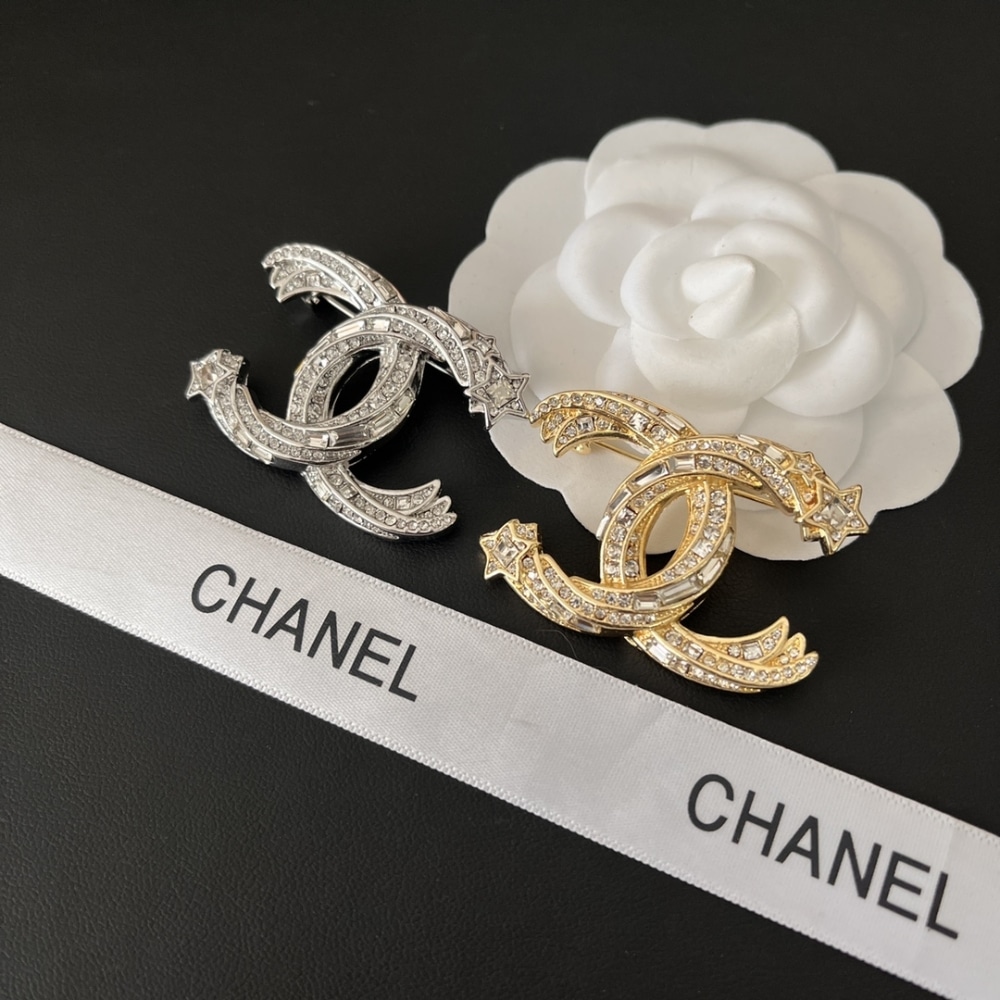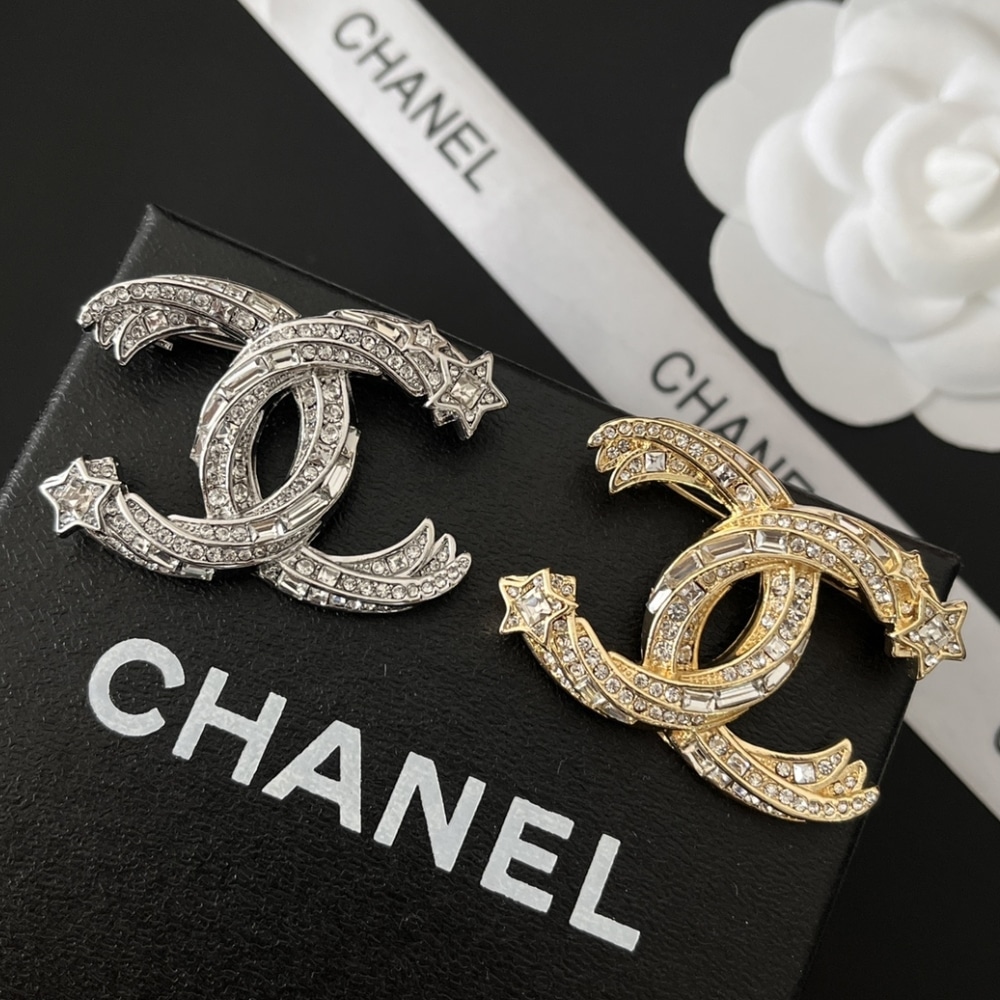 Home Shop Jewelry Brooch Chanel Cc Brooch Silver With Stones Attached And Two Stars