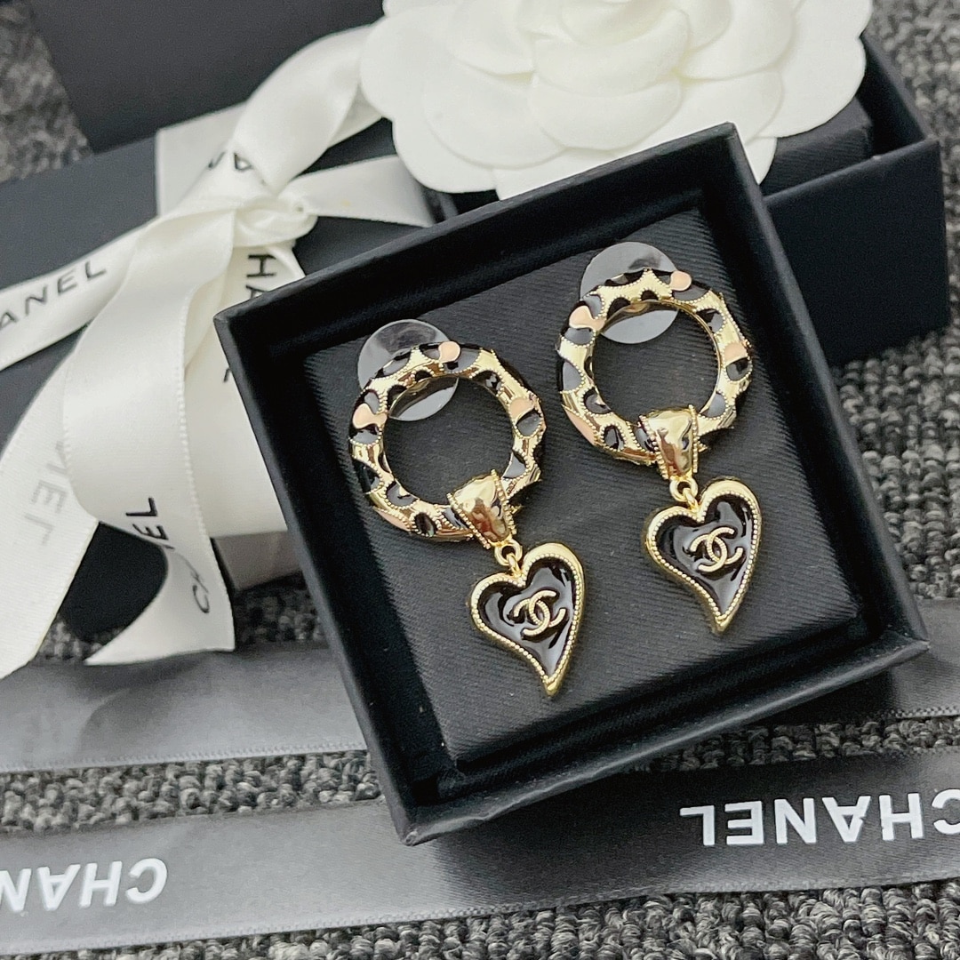 Home Shop Jewelry Earrings Chanel Classic Love Double C Logo Leopard Round Earrings