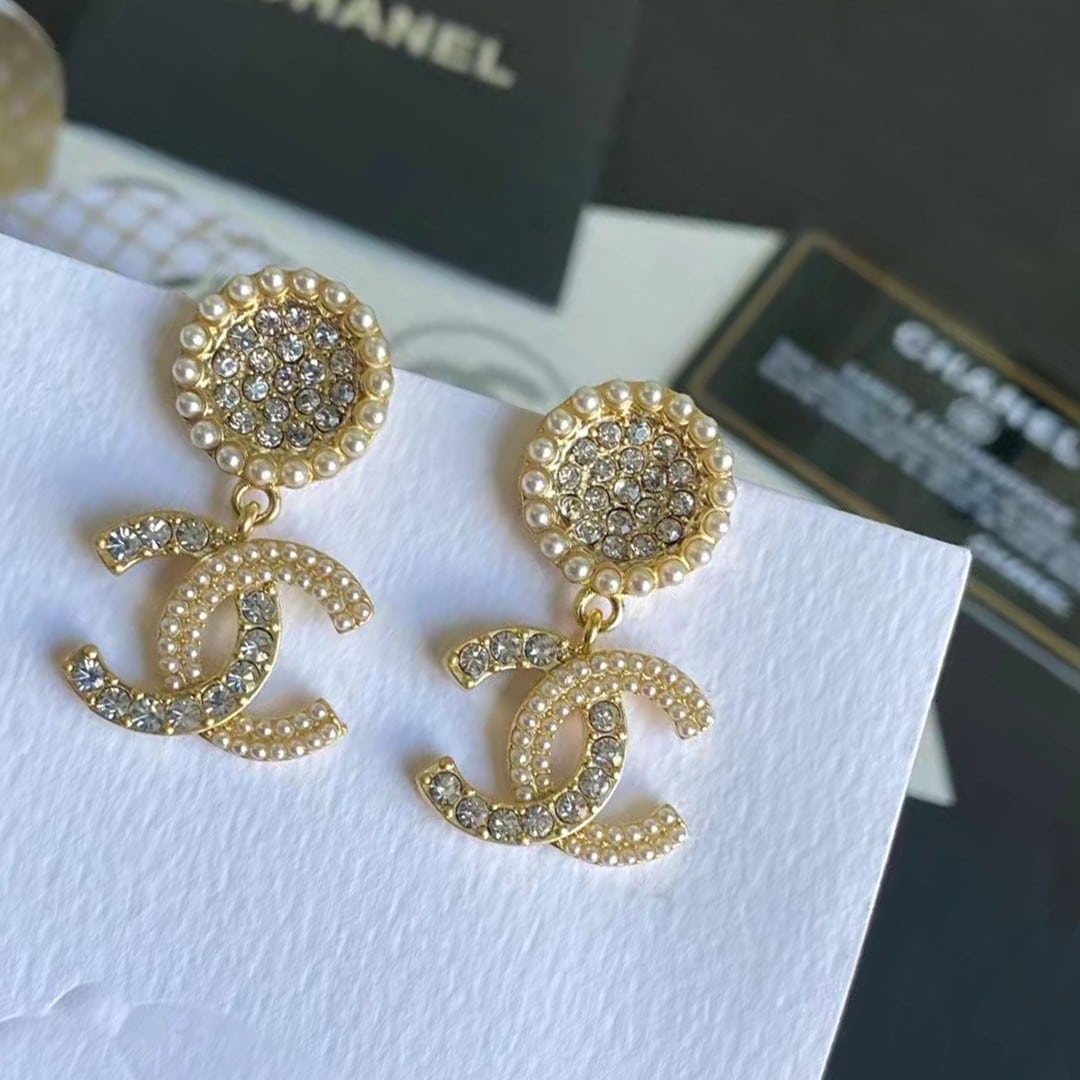 Home Shop Jewelry Earrings Chanel Crystal Pearl Cc Drop Earrings Gold