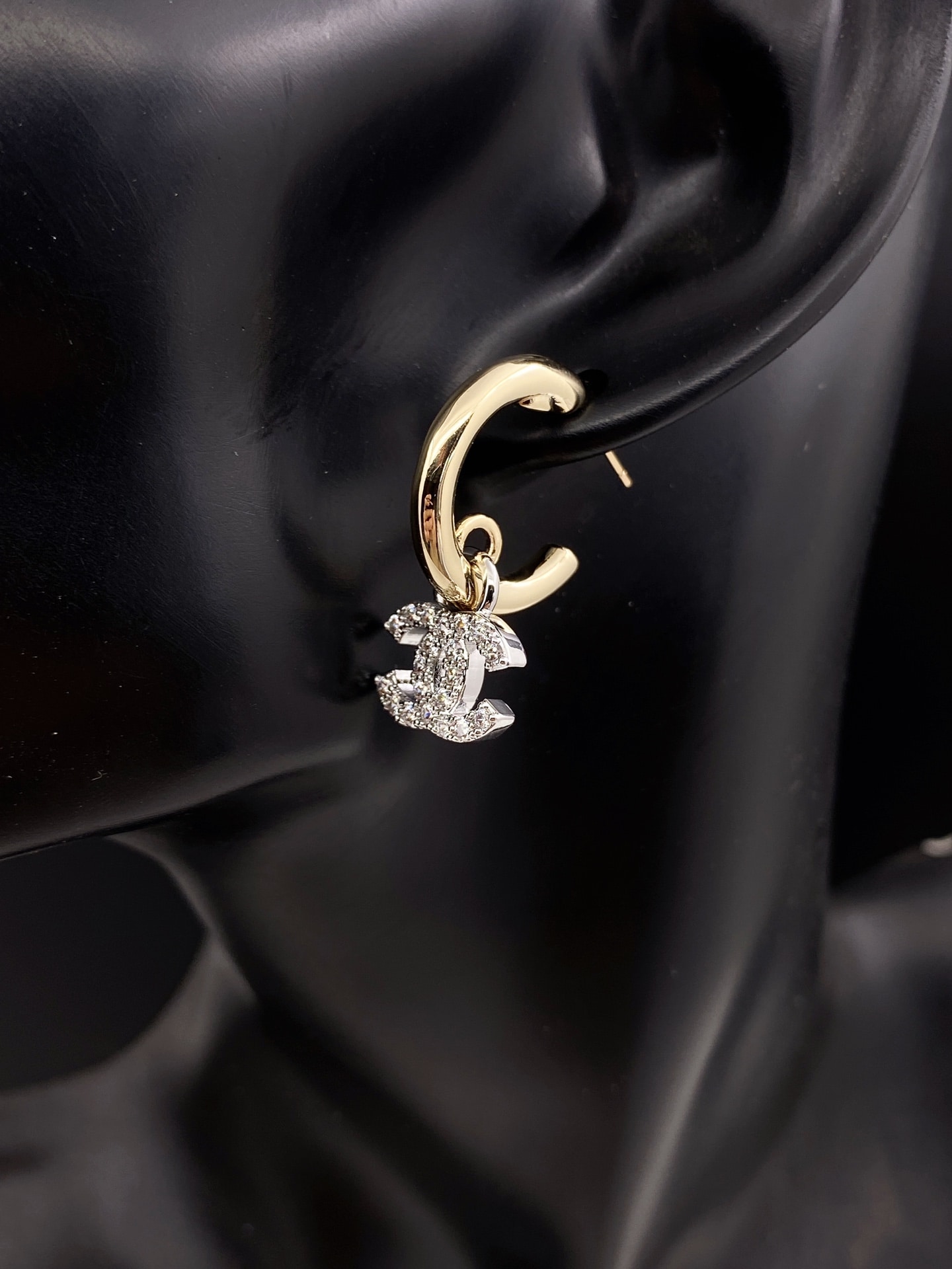 Chanel Crystal Cc Drop Earrings Gold $170.00