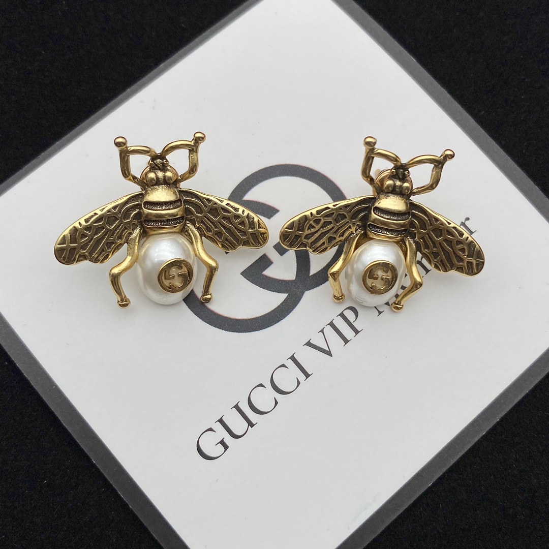 Gucci Gg Bee Pearl Gold Earrings