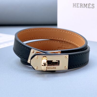 Hermes Kelly Double Tour Bracelet Leather Black H068438Cd89T1 $170.00