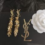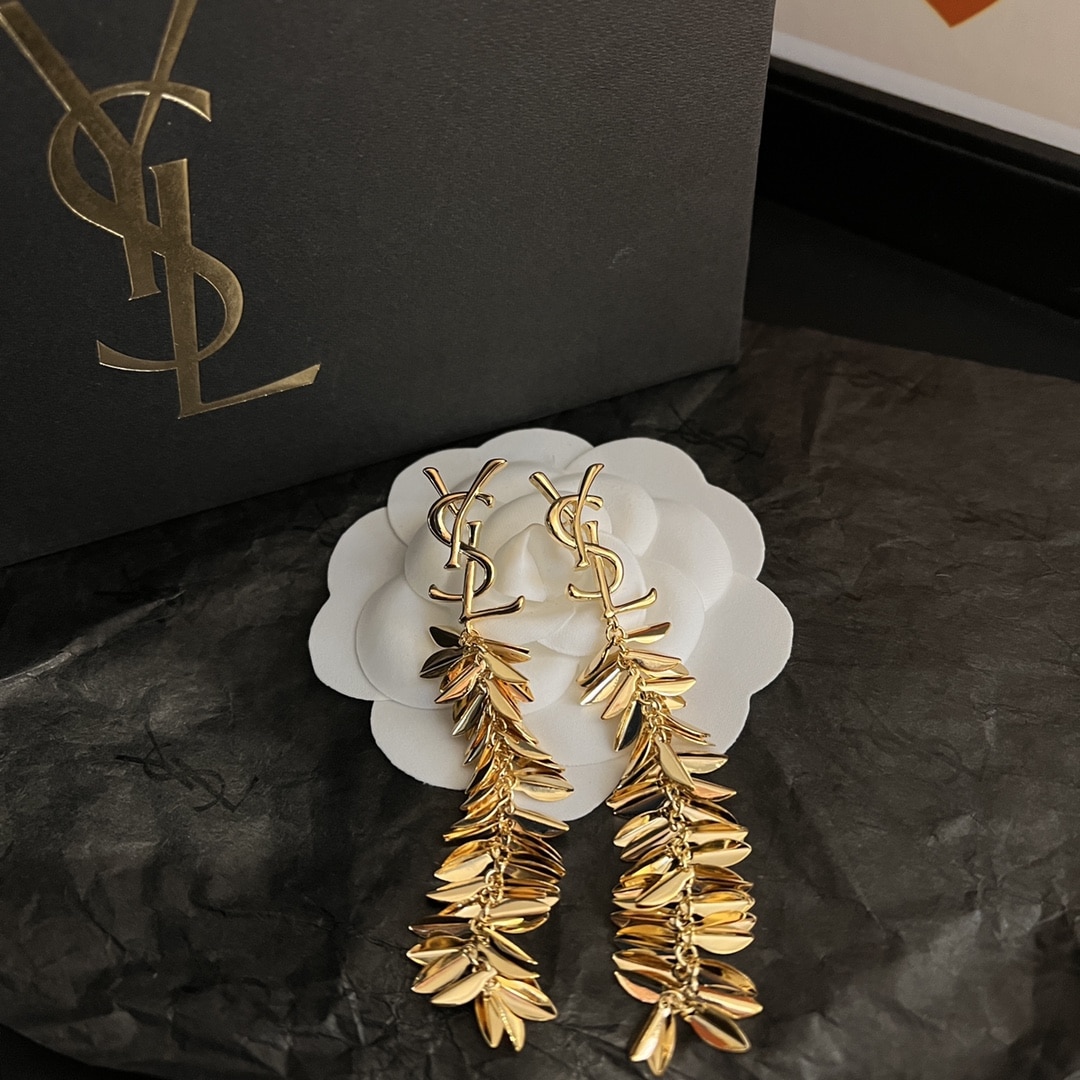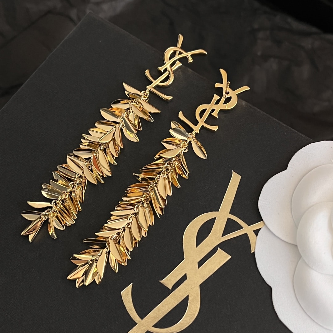 Saint Laurent Ysl Leaf Tassel Gold Earrings