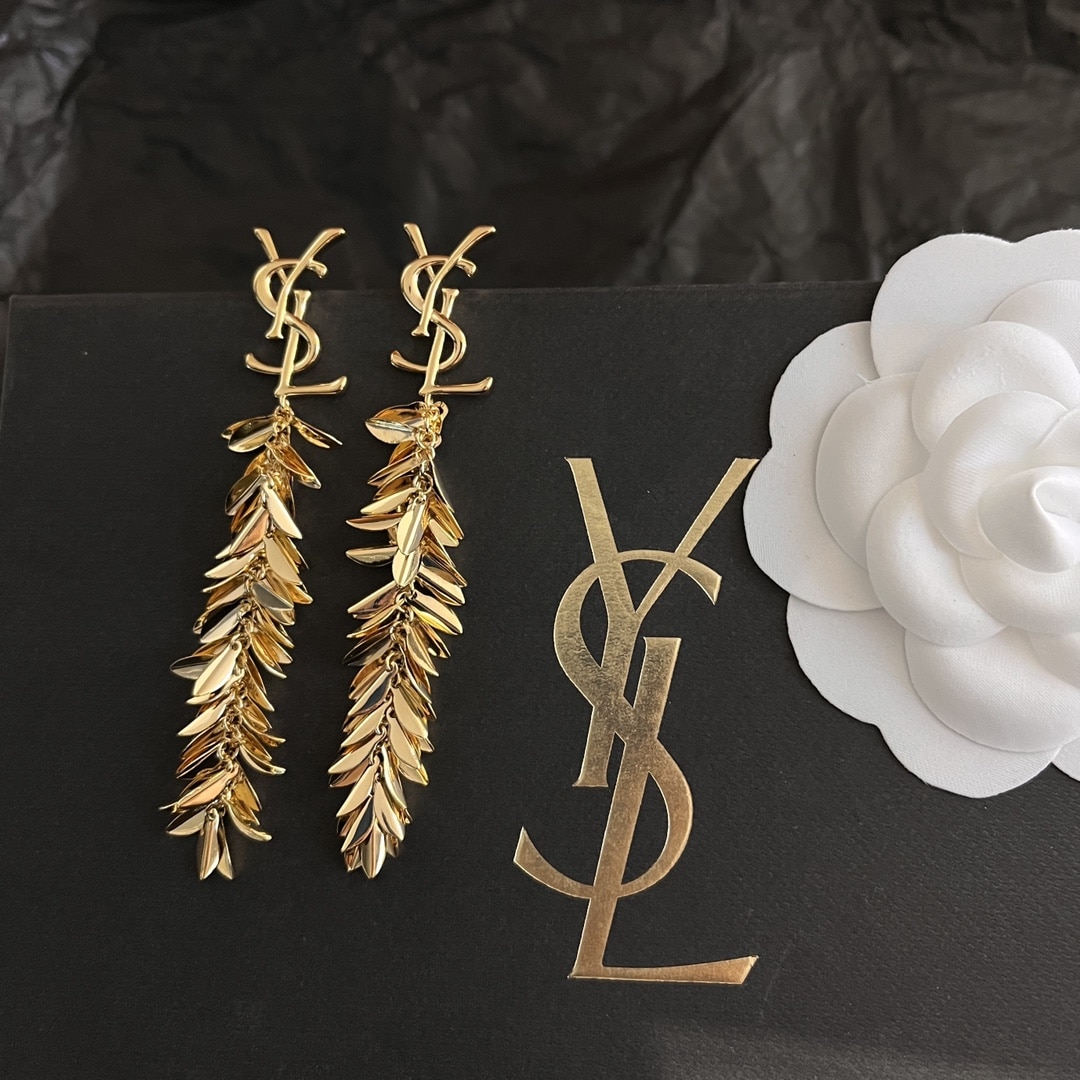 Home Shop Jewelry Earrings Saint Laurent Ysl Leaf Tassel Gold Earrings
