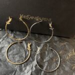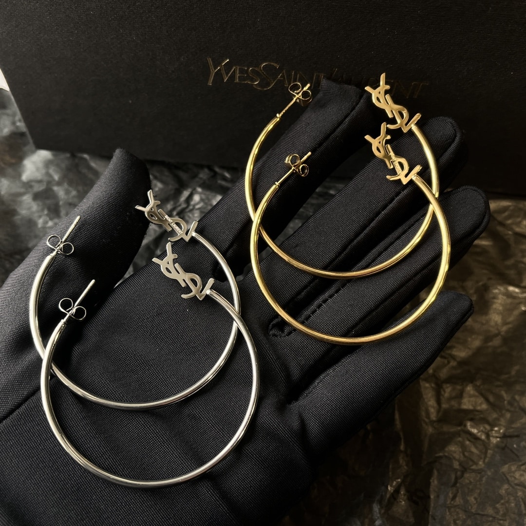 Saint Laurent Ysl Logo Big Round Earrings Silver Tone $170.00