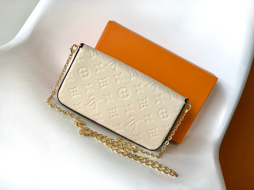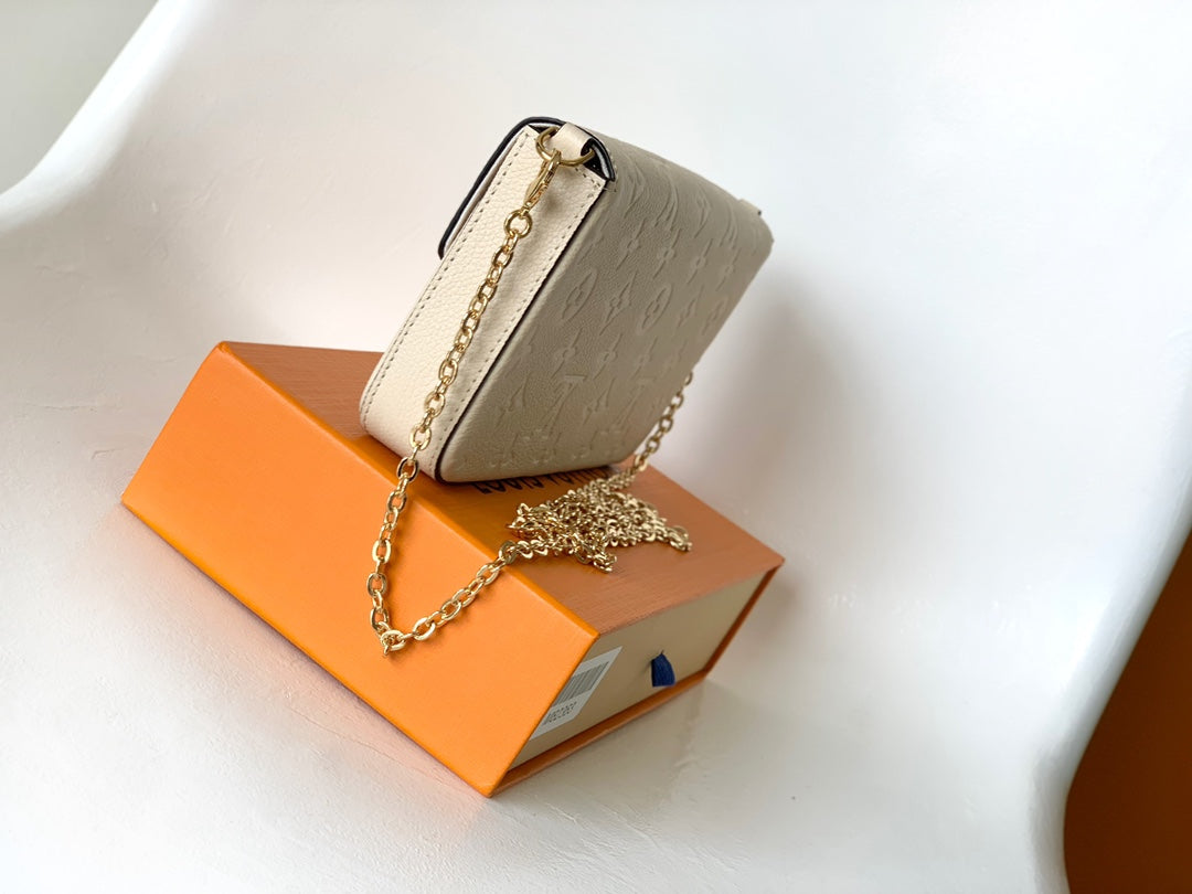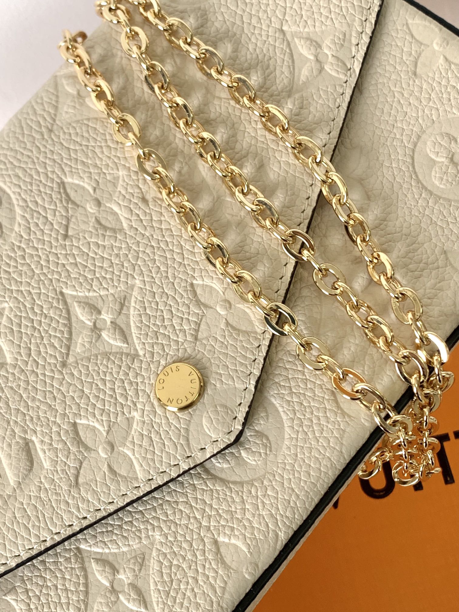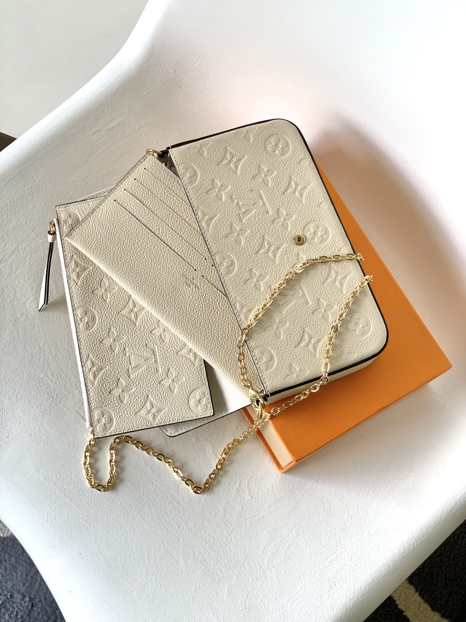 The detachable chain makes it easy to transform into a shoulder bag or hand bag.