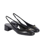 PRADA TRIANGLE LOGO BOW SLINGBACK PUMP IN BLACK