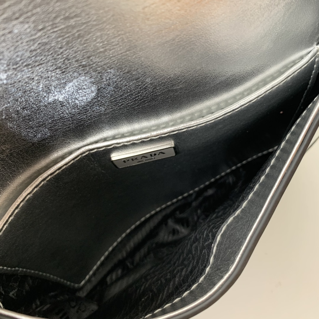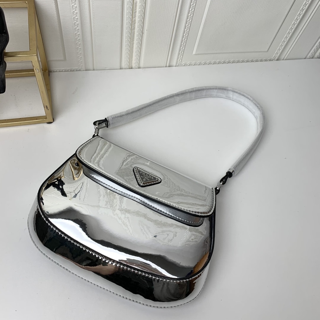 Prada Cleo Brushed Leather Shoulder Bag In Silver