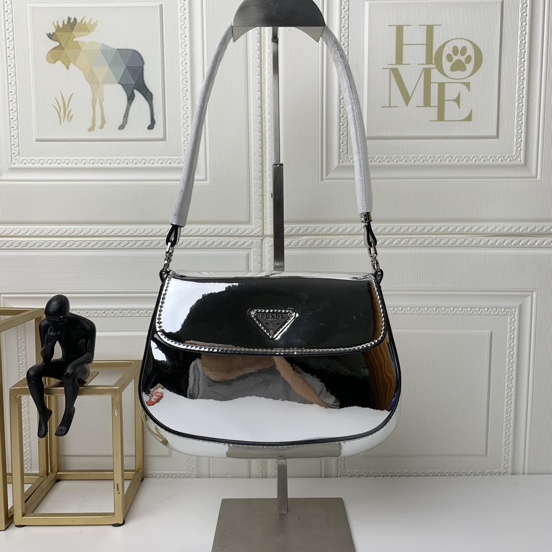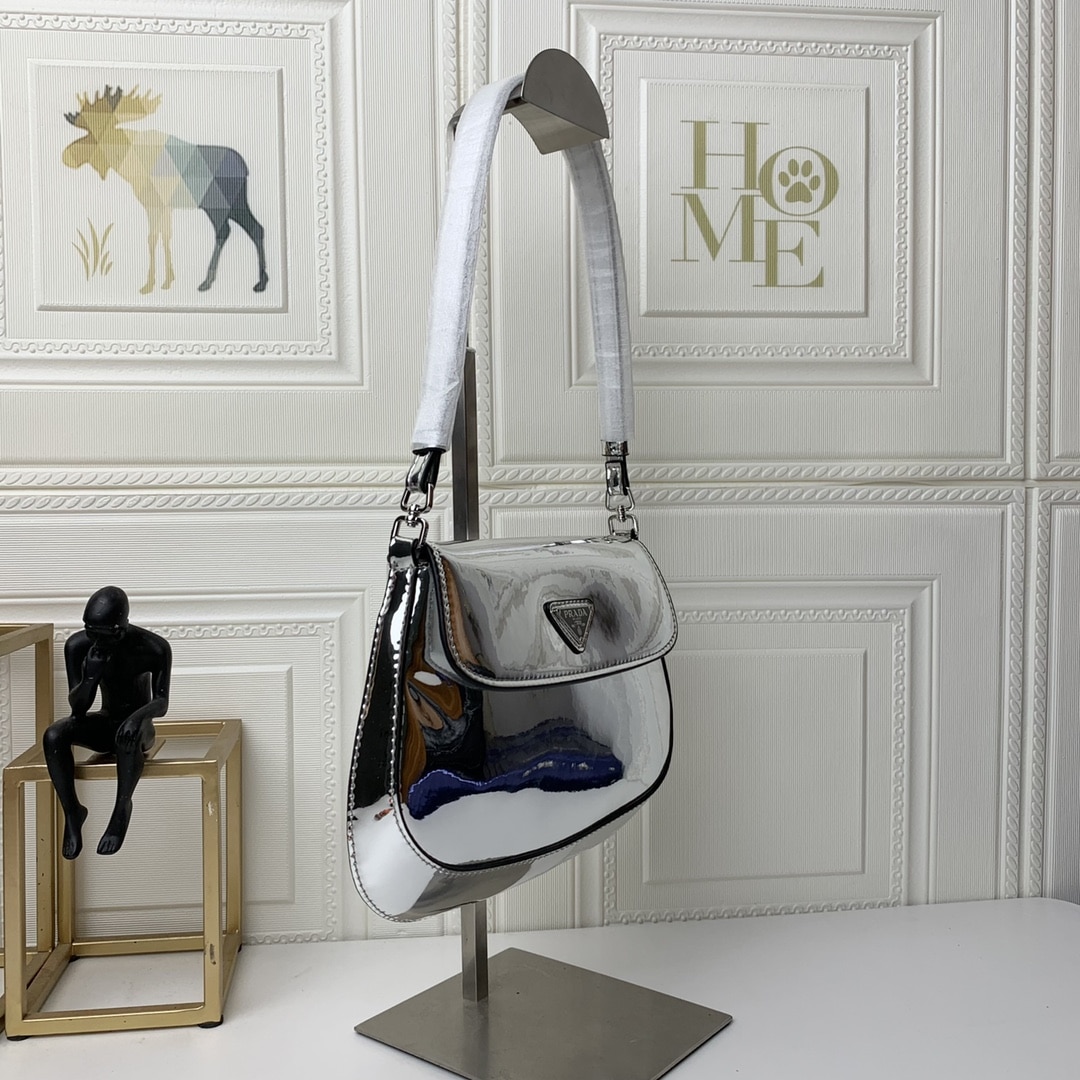 Home Shop Prada Prada Cleo Brushed Leather Shoulder Bag In Silver