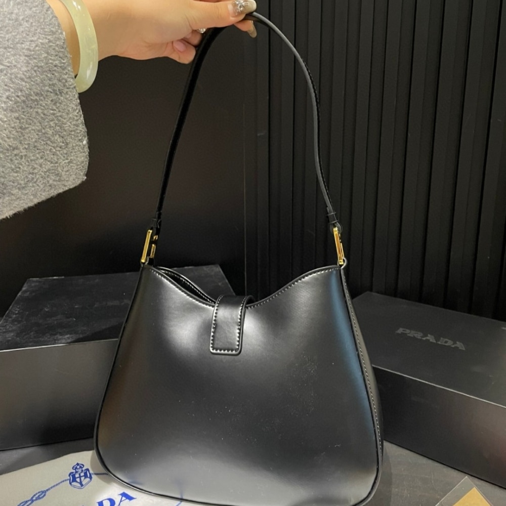 Home Shop Prada Prada Cleo Brushed Leather Shoulder Bag With Clasp Closure Black 26Cm
