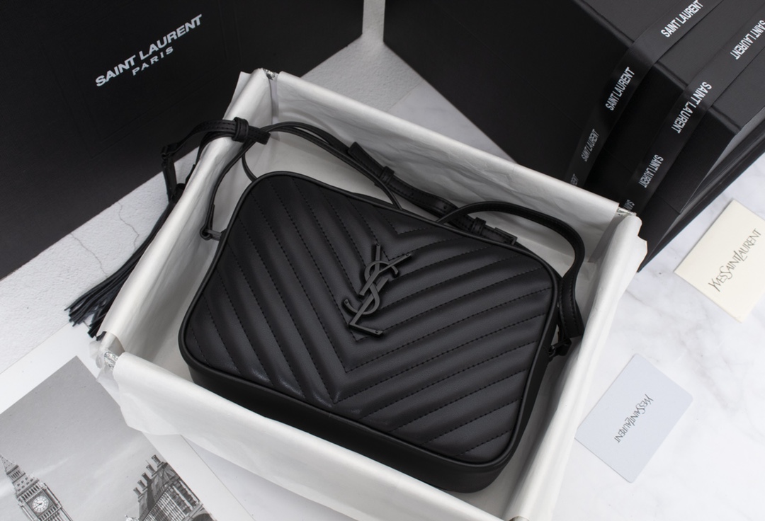Saint Laurent Lou Camera Bag In Quilted Black Noir Leather 23Cm