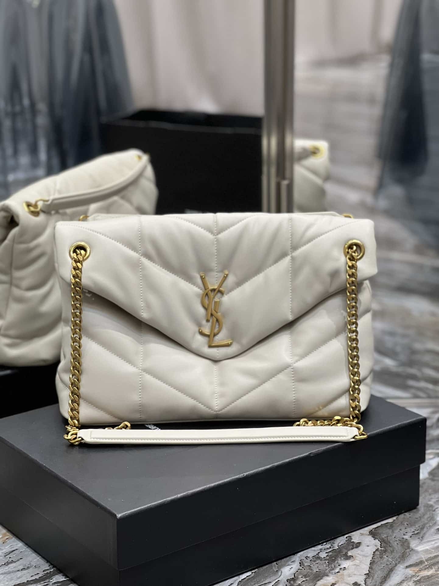 Home Shop Saint Laurent Saint Laurent Puffer Medium Chain Bag In Quilted Blanc Vintage