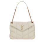 Saint Laurent Puffer Medium Chain Bag In Quilted Blanc Vintage