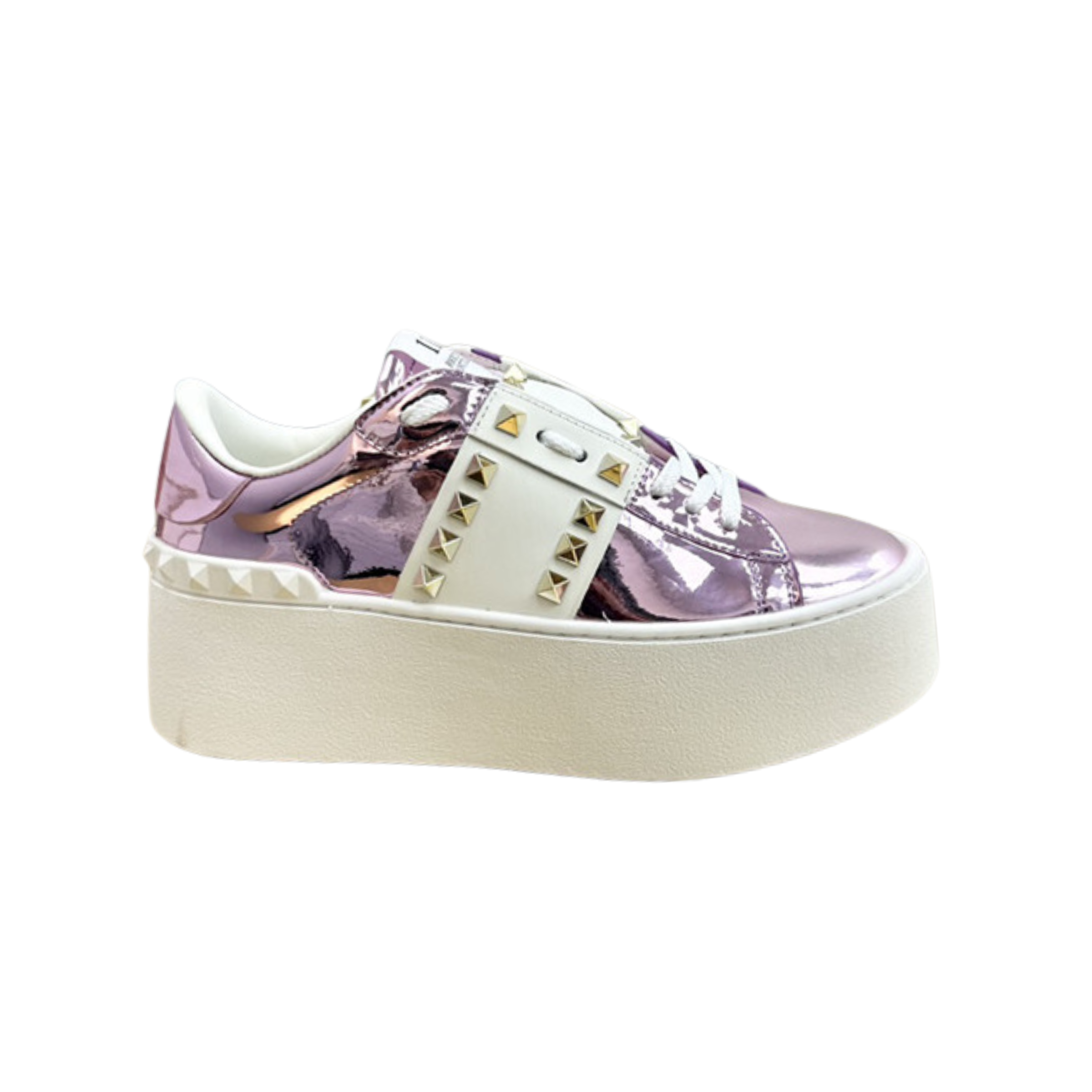 VALENTINO GARAVANI FLATFORM ROCKSTUD UNTITLED SNEAKER METALLIC PINK