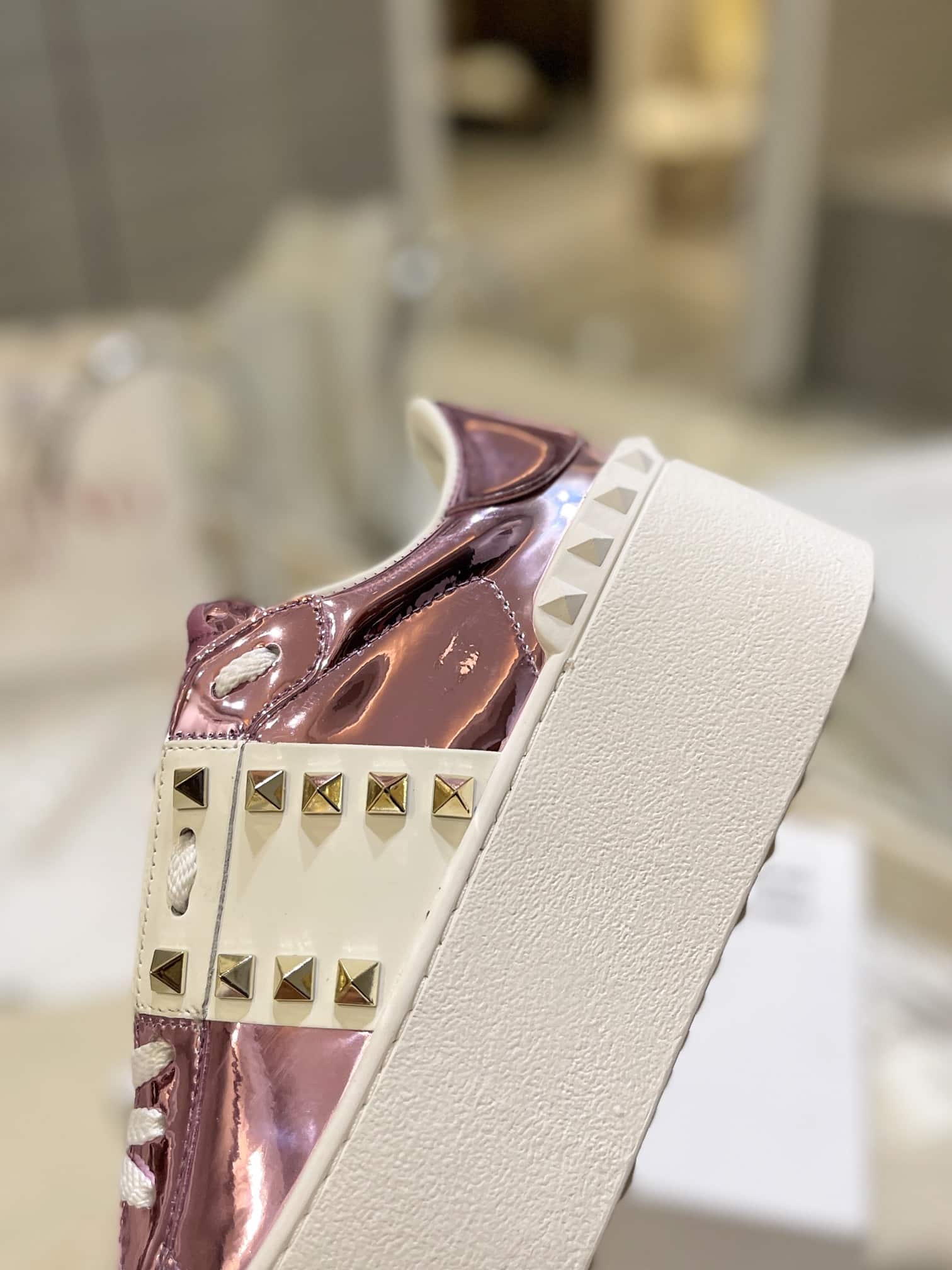 Home Shop Valentino Shoes VALENTINO GARAVANI FLATFORM ROCKSTUD UNTITLED SNEAKER METALLIC PINK