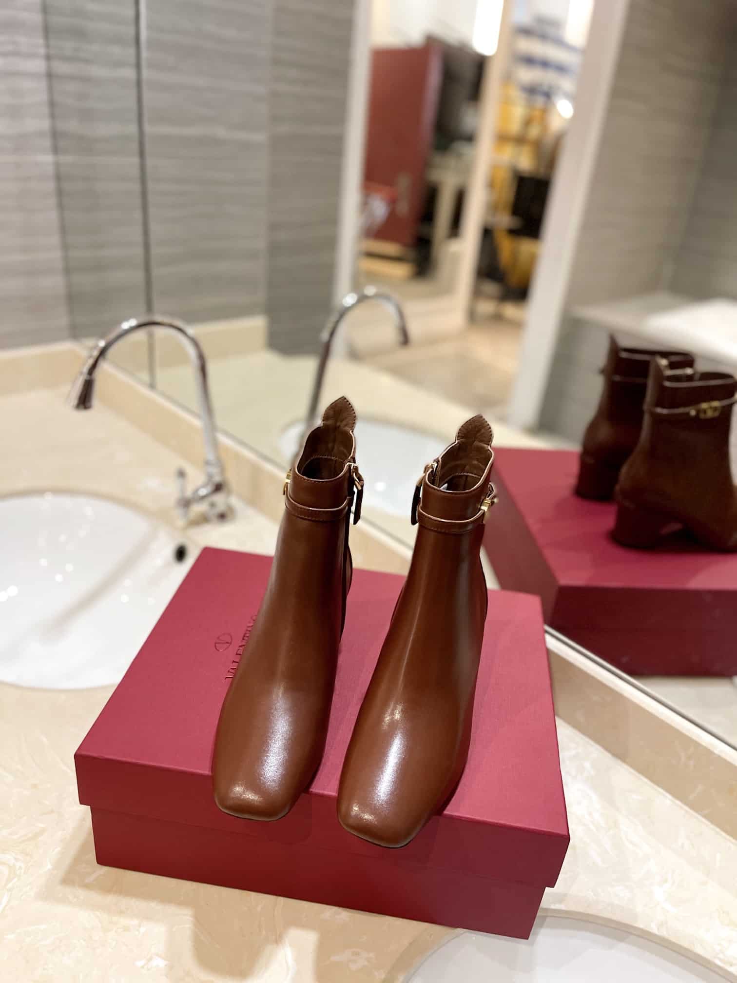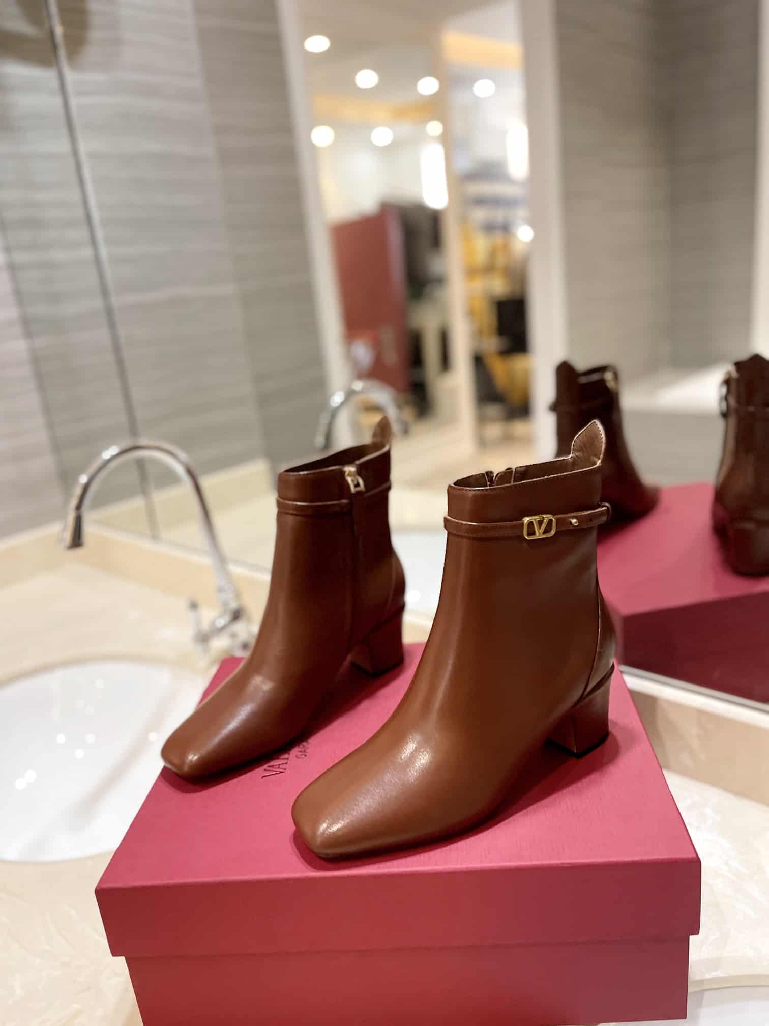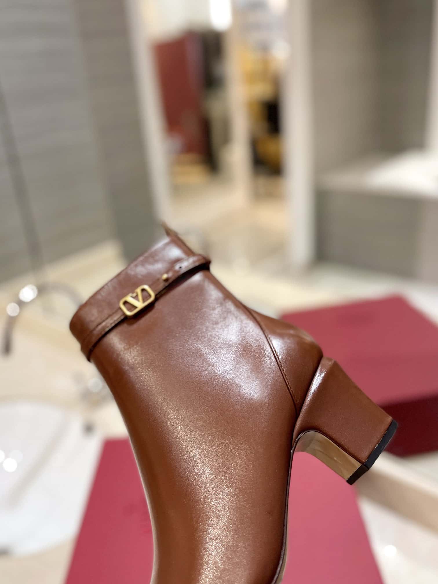 - Ankle strap with customized VLogo Signature buckle