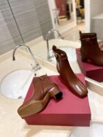 - Leather-covered block heel