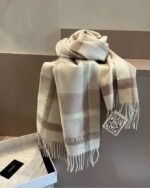 Loewe Cashmere Scarf Check Beige Brown For Women 180cm $239.00