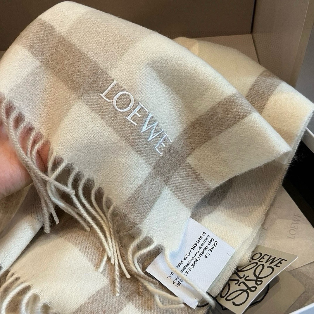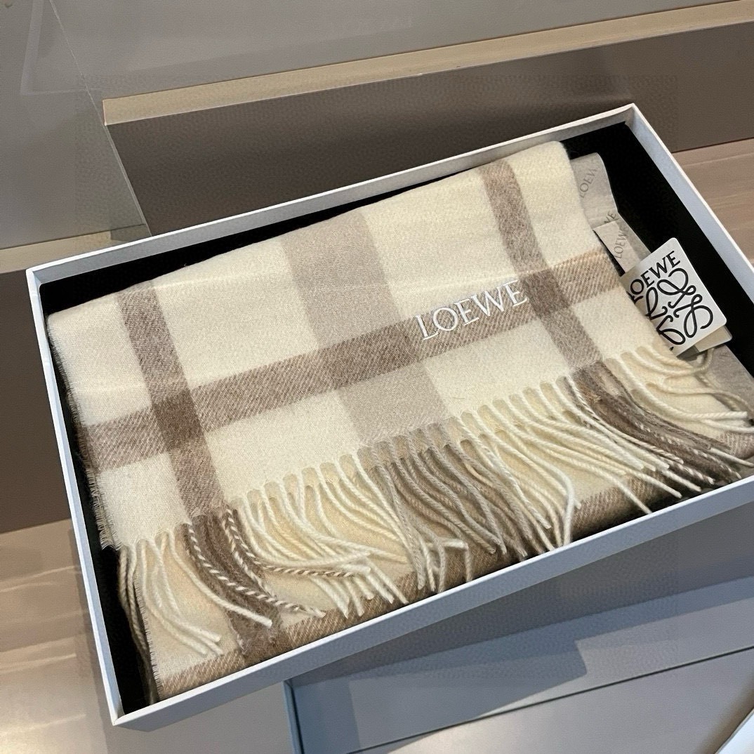 Loewe Cashmere Scarf Check Beige White For Women 180cm